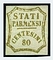 | («) | 1859, Governo provvisorio, 80 c. bistro oliva (18) nuovo senza gomma, ben marginato. (Cert. Sorani). | 4.500 | 675 | |||