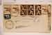 | * | 1945, Busta raccomandata affrancata con 1 lira violetto (519) blocco di quattro + un esempl. singolo (519) + 50 c. violetto di PM (7) coppia + 1 lira viola Marca industria e Commercio (28) in blocco di quattro spedita da Firenze per città il 10/8/45. | — | 500 | |||