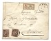 | * | 1863, 15 c- azzurro (11) 2 esemplari + Sardegna 5 c. (13Ea) coppia, su lettera da Ancona per Grasse, il 26/2/63. Per errore venne inviata al confine austriaco (essendo stato interpretato Grasse come Gratz) dove vennero applicati i bolli “S.2”, “Francobollo insufficiente” e “Debito Italiano Cent...”. Accortisi dell’errore la lettera fu incamminata verso la giusta destinazione e tali bolli furono cassati a penna. Interessante sia l’affrancatura sia il tragitto travagliato. | — | 600 | |||